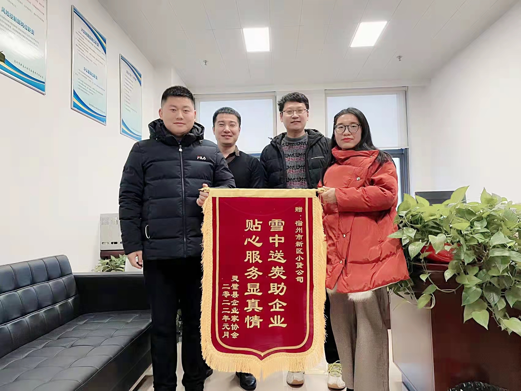 近日,宿州市新區(qū)小額貸款有限公司收到靈璧縣企業(yè)家協(xié)會(huì)負(fù)責(zé)人送來“雪中送炭助企業(yè) 貼心服務(wù)顯真情”的錦旗,對(duì)新區(qū)小貸公司急企業(yè)所急、想企業(yè)所想的工作舉措和服務(wù)表示感謝。