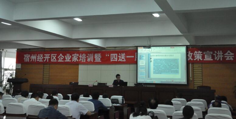 為進(jìn)一步幫助園區(qū)企業(yè)了解政策、用好政策,推進(jìn)經(jīng)開區(qū)“四送一服”雙千工程深入開展,5月4日下午,宿州經(jīng)開區(qū)召開企業(yè)家培訓(xùn)暨“四送一服”雙千工程政策宣講會(huì)。新區(qū)建投集團(tuán)擔(dān)保公司業(yè)務(wù)負(fù)責(zé)人為園區(qū)90多家企業(yè)開展了融資擔(dān)保政策宣講。