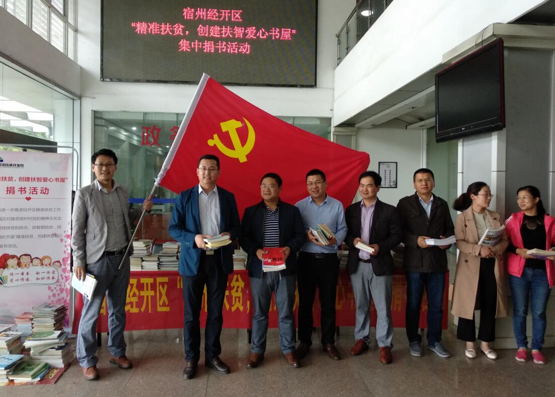 為貫徹落實(shí)市扶貧“重精準(zhǔn)、補(bǔ)短板、促攻堅(jiān)”專(zhuān)項(xiàng)整改行動(dòng)推進(jìn)會(huì)暨5月份脫貧攻堅(jiān)調(diào)度會(huì)精神,配合經(jīng)開(kāi)區(qū)脫貧攻擊工作深入開(kāi)展,豐富園區(qū)對(duì)接貧困村村民的精神文化生活,5月22日下午,宿州市新區(qū)建投集團(tuán)公司積極參加經(jīng)開(kāi)區(qū)管委會(huì)舉辦的“精準(zhǔn)扶貧,創(chuàng)建扶智愛(ài)心書(shū)屋”愛(ài)心捐書(shū)活動(dòng)。
