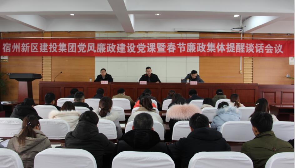 2019年春節(jié)將至,為進(jìn)一步落實(shí)全面從嚴(yán)治黨要求,強(qiáng)化節(jié)日期間廉政紀(jì)律,預(yù)防違紀(jì)現(xiàn)象發(fā)生,1月18日上午,宿州市新區(qū)建投集團(tuán)公司召開黨風(fēng)廉政建設(shè)黨課暨春節(jié)廉政集體提醒談話會(huì)議。宿州經(jīng)開區(qū)黨工委委員、新區(qū)建投集團(tuán)公司總經(jīng)理馮國(guó)強(qiáng)主持會(huì)議并作黨課報(bào)告。集團(tuán)公司領(lǐng)導(dǎo)班子,各部門、各子公司負(fù)責(zé)人及全體作人員參加會(huì)議。